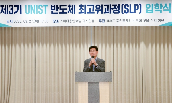 [광성일보] 용인특례시(시장 이상일)는 국내 유일 반도체 소재‧부품 특성화대학원 울산과학기술원(이하 UNIST)과 함께 ‘반도체 최고위 제3기 과정’을 시작한다고 28일 밝혔다.시는 지난 2023년 11월 반도체 전문 인력 양성을 위해 UNIST와 ‘반도체 교육·산학 허브 구축을 위한 업무협약’을 맺고 ‘반도체 최고위 과정’을 마련해 운영 중이다.‘반도체 최고위 제3기 과정’에 참여한 수강생들은 14주 동안 매주 목요일 반도체 기술 동향과 리더십 및 경영 전략, 예술·교양 강의를 이수한다.27일 저녁에 열린 입학식에는 이상일 용인특례시장과 안현실 UNIST 부총장, 최고위 과정 2기 수료생과 3기 수강생 등 20여 명이 참석했다.