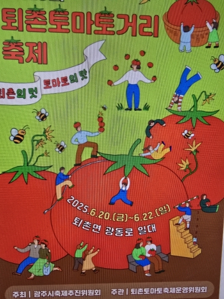 [광성일보] 광주시 퇴촌토마토축제운영위원회는 ‘제23회 퇴촌토마토거리축제’의 공식 슬로건을 ‘퇴촌의 멋! 토마토의 맛!’으로 확정했다고 4일 밝혔다.올해 축제 슬로건은 퇴촌의 아름다운 청정지역에서 재배된 토마토의 우수한 맛을 간결하면서도 효과적으로 표현하고 있다.