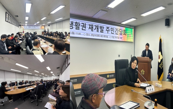 [광성일보] 성남시의회 박주윤 의원(국민의힘, 수정구 신흥2·3동·단대동)은 오늘 7일 오전 11시 성남시의회 5층 회의실에서 단대동 생활권계획에 따른 재개발 추진을 위한 주민간담회를 개최했다.최근 성남시 도시계획위원회 심의에서 단대동 재개발 계획이 재심의된 상황을 두고, 참석한 주민들은 이에 대한 이유를 질의했다.