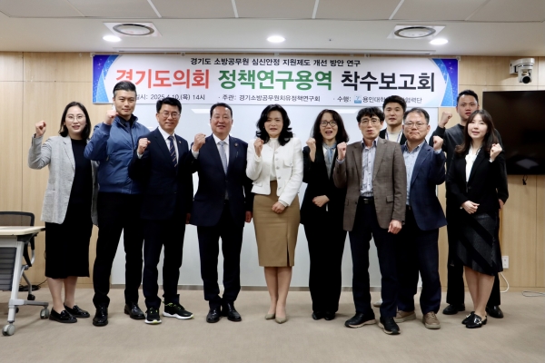 특히, 안계일 의원이 지속적으로 강조해 온 ‘경기도형 소방 심신수련원 설치’의 필요성과 타당성을 마련하는 기반 연구가 될 것으로 기대된다.이날 착수보고회에는 연구단체 회장 안계일 의원을 비롯해 ▲김규창(국힘, 여주2), ▲유경현(더민주, 부천7), ▲윤성근(국힘, 평택4), ▲이기환(더민주, 안산6), ▲이상원(국힘, 고양7), ▲이영주(국힘, 양주1), ▲이영희(국힘, 용인1), ▲이택수(국힘, 고양8), ▲장대석(더민주, 시흥2) 등 10명의 의원과 경기도 소방재난본부 관계자들이 참석해 연구의 출발을 함께했다.연구는 용인대학교 산학협력단에서 위탁 수행하며, 사회복지학과 박은하 교수가 책임연구를 맡았다. 향후 3개월간 도내 소방공무원 대상으로 심리적 어려움의 유형과 실태를 심층적으로 분석하고, 이를 바탕으로 소방공무원의 정신건강 회복 및 안정적 근무 환경 구축을 위한 특화된 지원 정책과 시설 구축 방안을 제시할 계획이다.