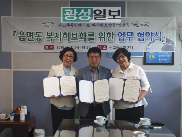 이천시 관고동 주민센터(동장 윤희태)와 사회복지법인 평안의 집 다사랑 요양원(이사장 이은경)․다사랑 양로원(시설장 김춘자)는 지난 11일 읍면동 복지허브화 추진에 따른 찾아가는 복지상담 및 복지사각지대 발굴을 위한 업무협약을 체결했다.