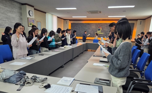 전 직원들은 공무원 행동강령 실천문을 낭독함으로서 부정 청탁 근절, 금품 향응‧수수 금지, 이해충돌방지법 준수, 적법 절차에 의한 업무 준수 등을 철저히 실천할 것을 다짐했다.
