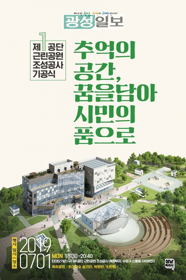 성남시(시장 은수미)는 오는 7월 1일 오후 6시 30분 신흥동 2458번지 건립 부지에서 ‘제1공단 근린공원 조성 공사 기공식’을 연다.