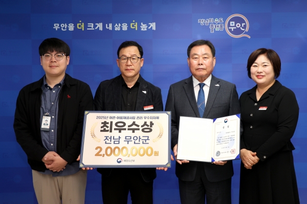 [광성일보] 전남 무안군(군수 김산)은 2025년 해양수산부 주관 어촌·어항 재생사업 평가에서 최우수 기관에 선정되는 쾌거를 거뒀다고 22일 밝혔다.이번 평가는 어촌뉴딜300, 어촌신활력증진사업을 추진한 전국 73개 광역 및 기초 지자체를 대상으로 1년간의 사업성과, 우수사례 등을 종합적으로심사해 진행됐다.