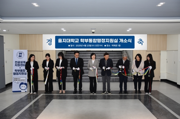 이날 개소식에는 홍성희 을지대 총장을 비롯한 박항식 부총장, 성호중 대학혁신지원사업단장, 강민수 전공통합학부장, 장세은 자연계열학부장, 백형의 인문사회계열학부장, 양지 부총학생회장(미용화장품과학과 3학년) 등 50여 명이 참석했다.학부통합행정지원실은 자연계열학부와 인문사회계열학부의 교직원과 전공조교 등 20여 명으로 구성됐으며, 이들은 앞으로 학사 운영에 필요한 행정지원과 정보제공, 상담서비스 등 업무를 담당한다.