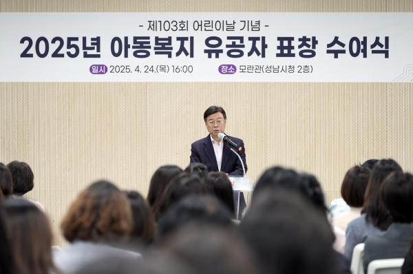 [광성일보]   신상진 성남시장은 24일 오후 시청 2층 모란관에서 개최된 ‘제103회 어린이날 기념 아동복지 유공자 표창 수여식’에 참석했다.