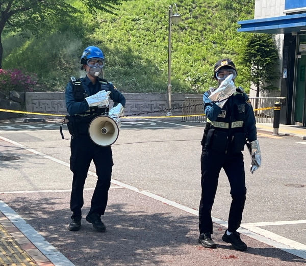 이번 훈련은 연일 지속되는 건조주의보와 강풍으로 인해 국민 안전확보와 피해 최소화를 위해 실제와 같은 환경을 조성해 진행했다.특히 대형 산불로 인해 인근 주민 긴급 대피, 초기 화재 진압, 도로 통제, 응급환자 이송, 대형 화재로 경찰관서 기능 불가능 상황 등 복합 상황을 가정해, 다양한 변수가 많은 위기상황에서 적절한 조치를 할 수 있도록 총력 대응 훈련하며 유관기관과 공조체계를 점검했다.