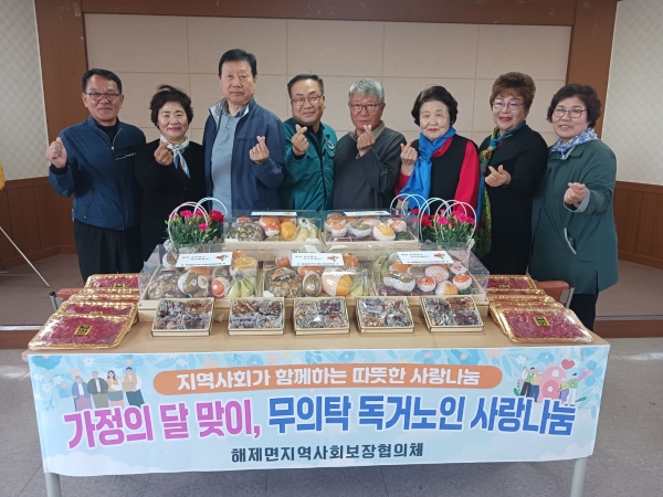 [광성일보] 무안군 해제면 지역사회보장협의체(공동위원장 박성서, 김대영)는 지난 2일 가정의 달을 맞아 관내 저소득 무의탁 독거노인을 대상으로 ‘사랑나눔 꾸러미’를 전달하며 따뜻한 정을 나눴다.