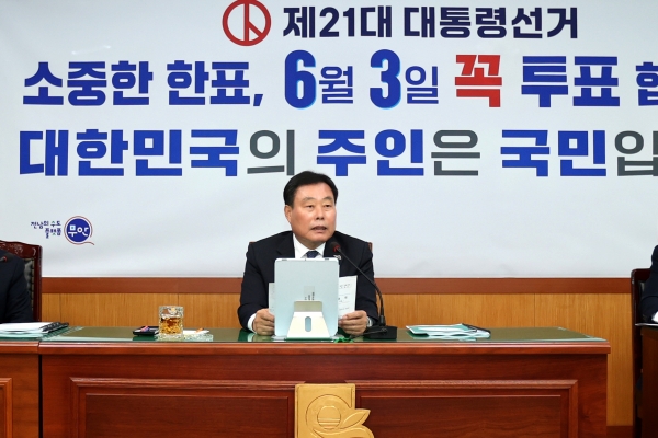 [광성일보] 전남 무안군(군수 김산)은 13일 제21대 대통령 선거를 앞두고 군민들이 소중한 한 표를 행사할 수 있도록 투표 참여 홍보 회의를 개최했다.