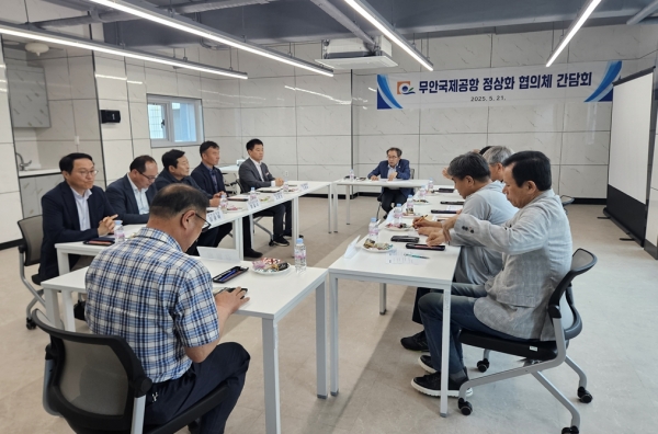 [광성일보] 무안국제공항 활성화 추진위원회(위원장 박일상)는 지난 21일 무안창작소에서 무안국제공항 정상화를 위한 협의체를 구성하고 간담회를 개최했다.박일상 위원장이 주재한 간담회에서는 전라남도의회 의원, 무안군의회 의원 등 12명의 관계자가 참석해 무안국제공항의 현황 및 하반기 공항 정상 운영을 위한 각 분야의 필요 조치에 대한 의견을 나누고 정보를 공유했다.