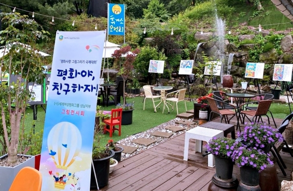 [광성일보] ㈔세계여성평화그룹(IWPG) 성남지부(지부장 최주애)가 지난 24일 경기 광주시 남한산성에 위치한 카페 '오전리 휴게소'에서 ‘평화사랑 그림그리기 국제대회’ 수상작 전시회를 개최했다.