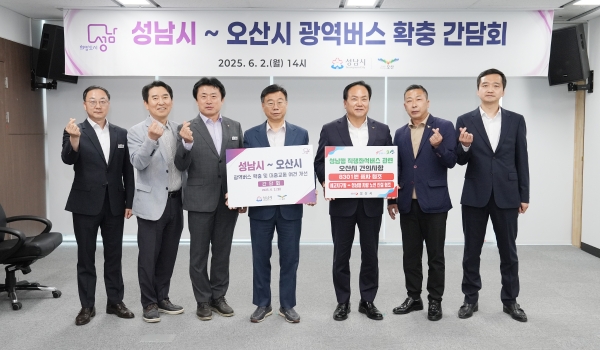 신설 노선은 오산 세교 신도심에서 출발해 성남 판교역과 야탑역을 연결하는 광역버스 8303번(2대)과 출퇴근형 맞춤버스(2대)로, 2026년 상반기 운행을 목표로 하고 있다.앞서 작년 4월에는 오산터미널~야탑역을 연결하는 광역버스 8302번(2대)이 개통되어 현재 운행 중이다.이번 간담회는 성남시로의 출퇴근 교통수요 해소를 위한 오산시의 광역버스 노선 확충 요청에 성남시가 동의하고 적극 협조하면서 성사됐다.성남-오산간 노선 확충이 이루어지면 성남시는 235개 노선에 2677대(출퇴근형 맞춤버스 제외)의 버스를 운행해, 경기도 31개 시·군 가운데 가장 많은 버스 물량과 이용률을 더욱 공고히 할 전망이다.