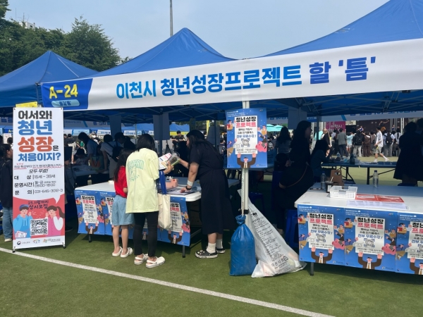 [광성일보] 이천시(시장 김경희)는 지난 31일 온천공원에서 개최된 제3회 청소년축제 현장에서 ‘2025 이천시 청년성장 프로젝트’ 홍보부스를 운영하며 많은 관심을 모았다. 이번 부스는 청년아동과와 사업 운영기관인 한국고용서비스진흥원이 공동으로 운영했으며 15세에서 39세 청년과 청소년을 대상으로 청년성장프로젝트의 취지와 내용을 널리 알렸다.