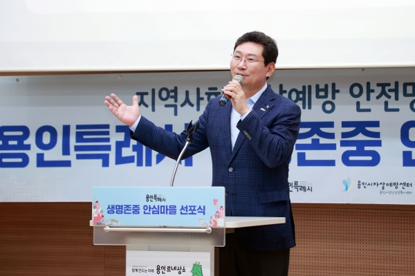 [광성일보] 용인특례시(시장 이상일)는 10일 기흥구보건소 대회의실에서 ‘생명존중안심마을 선포식’을 개최하고, ‘생명존중안심마을 조성 사업’을 본격적으로 추진한다고 밝혔다.이 사업은 지역 특성에 따른 맞춤형 자살예방사업을 추진코자 ‘생명존중안심마을’을 조성, 지역사회 내 지속 가능한 자살 예방 안전망을 구축하고, 주민 스스로 생명을 지키는 공동체 문화를 형성하는 것을 목표로 한다.2025년에는 신갈동, 구갈동, 풍덕천1동, 신봉동, 포곡읍, 유림동 등 6개동(읍)을 우선 대상지로 선정, 생명존중안심마을을 시범 조성한다.2026년엔 6개동, 2027년엔 7개동을 추가로 조성하는 등 생명존중안심마을을 총 19개 지역으로 확대할 계획이다