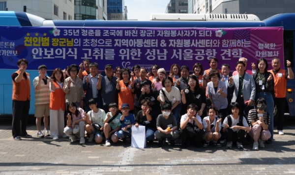 [광성일보] 성남시자원봉사센터 운영위원과 직원을 비롯해 관내 지역아동센터 아동들과 지도교사 등 40명은 6월 11일 성남시 서울공항내 주한미군부대를 견학했다. 관내 협력기업 ㈜HL만도에서 지원한 대형버스를 이용해 기지를 방문한 견학단 일행은 부대장인 그라츠 중령과 부대원들의 큰 환영을 받았다. 그라츠 중령은 환영사에서 “자원봉사자 여러분과 어린이들의 방문에 감사하고, 이번 방문이 좋은 기억으로 남기를 바라며, 현재 이곳에 근무하는 미군들도 여러 경로로 지역사회를 위한 자원봉사에 참여하고 있으니 자주 만날 수 있게 되기를 바란다”라고 말했다.