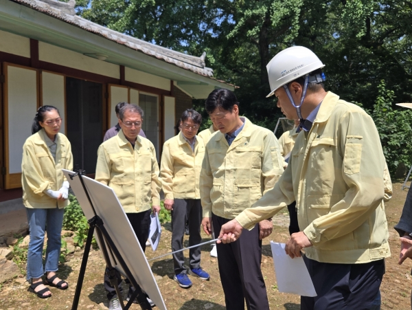 먼저 윤 부시장은 덕진구 전미동에 위치한 백석저수지를 방문해 재해복구 사업 추진 현황과 향후 계획, 안전 조치 계획 등을 꼼꼼히 점검했다. 이날 방문한 백석저수지는 지난 2023년 7월 내린 집중호우로 인해 제당 일부 약 80m 구간이 붕괴되는 피해가 발생한 곳으로, 사고 직후 방수포와 톤마대, 이동식 사이펀을 설치하는 등의 응급조치가 이루어졌다. 여기에 이달부터 총사업비 44억 원이 투입돼 항구적인 복구가 추진되고 있으며, 오는 2027년까지 게비온 옹벽과 그라우팅 공법을 통해 수리시설의 전면 보강이 이뤄질 예정이다. 이어 윤 부시장은 지난 2023년 여름 집중호우로 토사 붕괴 피해가 발생한 완산구 교동 일대 일광암 인근 비탈지를 찾아 현장을 둘러봤다.