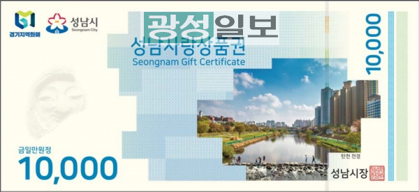 5천원권 도안은 성남시청사를, 1만원권은 탄천 전경을 각각 배경으로 넣어 지역의 특색을 살린 디자인을 입혔다. 각 전경은 앞서 성남시가 선정한 사진 공모전 입상작이다.