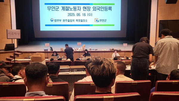 그러나 관할기관인 광주출입국·외국인사무소 목포출장소는 7개 시군을 관할하고 있고, 상반기에 입국한 계절노동자의 등록은 6월과 7월에 집중돼 민원 처리에 장시간이 소요되어 당일에 등록을 마치지 못하는 경우가 많다.이에 무안군은 목포출장소와 협력해 ‘찾아가는 출입국 민원서비스’를 제공하여 농번기로 바쁜 지역 농가와 외국인 계절노동자의 불편을 덜었다.현장 민원서비스는 지난 5월 29일과 6월 18일 두 차례에 걸쳐 무안읍 승달문화예술회관에서 운영됐으며, 상반기 입국 계절노동자 547명 중 84%인 460명이 등록을 마쳤다.