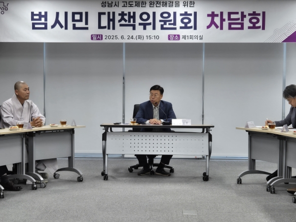 [광성일보] 성남시 고도제한완전해결을위한범시민대책위원회(상임대표 도봉스님, 이하 성남시 고도제한범대위)는 24일 오후 3시 성남시청 제1회의실에서 신상진 성남시장과 차담회를 가졌다.이날 차담회는 성남시 고도제한범대위가 고도제한 완화에 대한 성남시의 용역 추진상황 등에 대한 공감대를 형성하기 위해 마련됐다.이날 차담회에서 신상진 성남시장은 인사말을 통해 “성남시가 용역을 추진하고 있는 고도제한 완화 관련 용역은 2026년 1월경 구체적인 청사진이 나올 것”이라면서“이는 지난 해 말 국방부와 협의를 진행하는 과정에서 계엄령으로 인해 불가피하게 용역이 연기된 것”이라고 밝혔다.