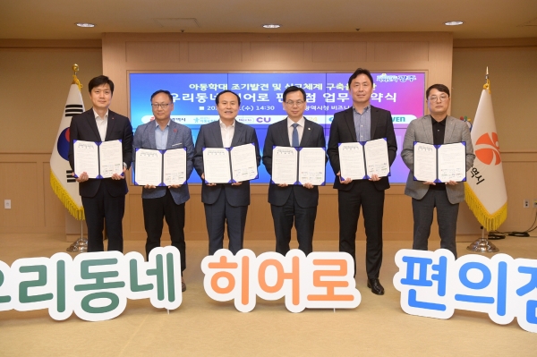편의점 운영사는 아동이 도움을 요청할 수 있는 안전 공간으로서 환경을 조성하고, 안내물‧포스터 등을 통한 시민 대상 인식 개선 활동에 나선다. 또 아동학대 인식, 신고 방법, 위기아동 응대 요령 등에 관한 대응 매뉴얼을 비치하고 아동학대 의심 사례 인지 시 즉각적인 신고와 관계기관 연계를 수행할 계획이다.편의점 운영사들은 지역사회와 함께 아동들의 안전을 지키는 데 책임감을 갖고 적극 동참할 뜻을 밝혔다.광주시는 이번 협약으로 지역 내 1300여개 편의점을 아동보호의 생활 밀착형 안전망으로 활용하는 기반을 마련했다.고광완 행정부시장은 “아동학대는 조기 발견과 신속한 대응이 무엇보다 중요하다”며 “이른 새벽부터 늦은 저녁까지 골목을 밝히는 우리 동네 가게에서 어른들의 관심과 지원으로 아이들의 안전한 성장을 응원하는 ‘우리동네 히어로’가 돼 주시길 바란다”고 말했다.