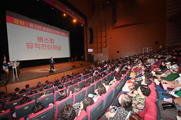 [광성일보] 이현재 하남시장은 3일 하남문화예술회관 검단홀에서 열린 ’‘민선 8기 3주년 토크콘서트에서 “하남이 강남과 경쟁하려면 더 큰 도전이 필요하다”며 “지난 1,098일간 쉼 없이 달려온 발걸음을 바탕으로, 더 높이 도약하겠다”고 포부를 밝혔다.이날 행사는 권역별 시민패널과 각계 인사, 시민 1,000여 명이 참석한 가운데, 지난 3년간 이룬 ▲행정혁신 ▲교통 ▲문화 ▲교육 ▲세대별 복지 ▲기업 유치 등 주요 시정 성과와 향후 도시 발전 방향을 시민과 함께 공유하는 소통의 장으로 마련됐다.첫째, 민선8기 3주년 성과는 전국 최초로 2년 연속 민원서비스 종합평가 대통령상을 수상하며 전례 없는 행정성과를 이뤄냈다. 이는 열린시장실·이동시장실을 비롯해 시민참여혁신위원회, 정책모니터링단 등 현장 중심의 소통 시스템이 자리 잡고, 공직자 역량을 강화하는 조직문화가 확산된 데 따른 성과다.‘K-컬처중심도시, 문화도시 하남’이라는 도시브랜드는 숫자로 증명됐다. ‘뮤직인더하남’은 첫해(‘23년) 관람객 5천 명에서 올해 2만6천 명으로 5배 이상 증가했고, Stage 하남 버스킹은 3년간 총 172회 공연, 6만 명의 시민이 참여한 대표 거리 문화로 자리 잡았다. 도심 속 10개소에 조성된 맨발 황톳길과 모랫길은 시민들의 발걸음을 자연과 연결했다.