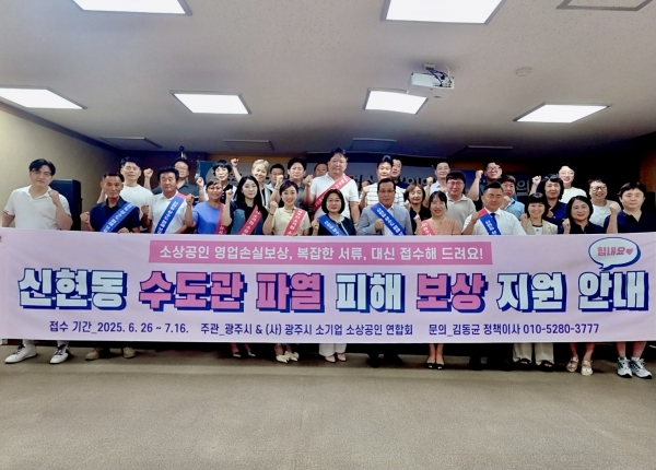 [광성일보] 광주시 신현동 일대에서 발생한 수도관 파열로 인해 지역 소상공인들이 큰 영업손실을 입은 가운데, 광주시 소기업 소상공인 연합회(회장 한상원)가 직접 피해 보상 지원에 나섰다. 이번 지원 캠페인은 경기광주 소기업소상공인연합회 정책이사 김동균의 기획으로 6월 26일부터 7월 16일까지 진행되며, 피해를 입은 신현동 소상공인들이 실질적인 도움을 받을 수 있도록 체계적으로 운영되고 있다.