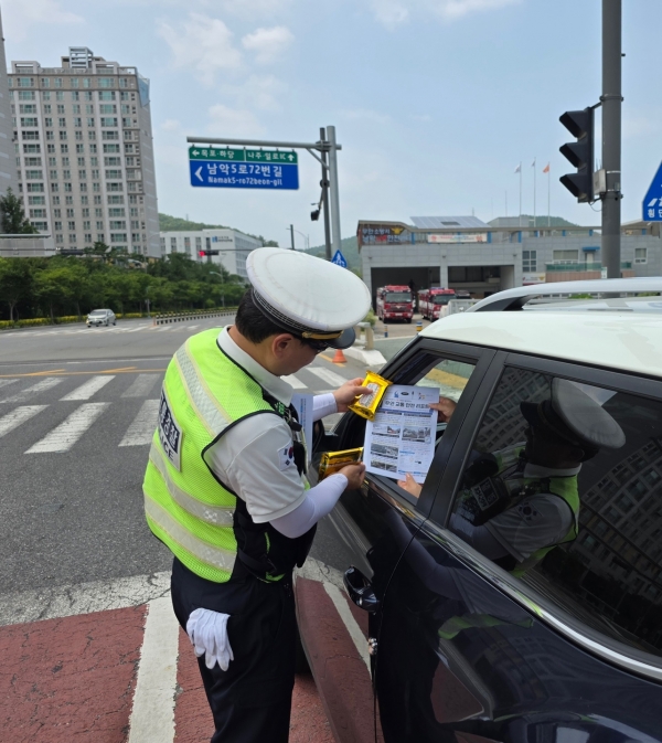 이번 계도활동은 끼어들기, 꼬리물기, 새치기 유턴 등 사소해 보일 수 있는 교통법규 위반행위가 교통안전을 위협하고 사회적 무질서를 초래할 수 있다는 인식 아래, 단속 중심이 아닌 자발적인 교통 준수 의식 제고에 중점을 두고 추진됐다.특히, 교통량이 집중되는 출·퇴근 시간대 주요 교차로를 중심으로, 자체 제작한 치안 소식지와 물티슈 등 홍보물을 활용해 기초질서 준수의 중요성과 필요성을 운전자들에게 자연스럽고 효과적으로 전달했다.
