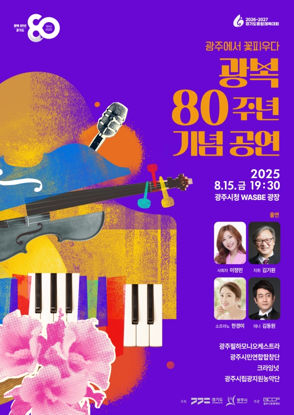 [광성일보] 재단법인 광주시문화재단(대표이사 오세영)은 오는 8월 15일 금요일 오후 7시 30분, 광주시청 WASBE 광장 야외무대에서 광복 80주년을 기념하여 “광주에서 꽃피우다” 행사를 진행한다고 밝혔다. 경기도 광주는 정암 이종훈, 해공 신익희, 춘경 구연영 선생 등 대표적인 독립운동가들이 활동했던 항일 독립운동의 중심지였다.