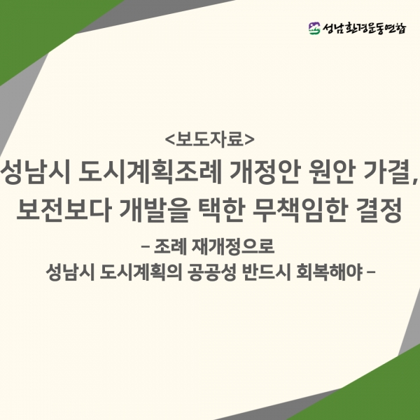 성남시 도시계획조례 개정안 원안 가결, 보전보다 개발을 택한 무책임한 결정