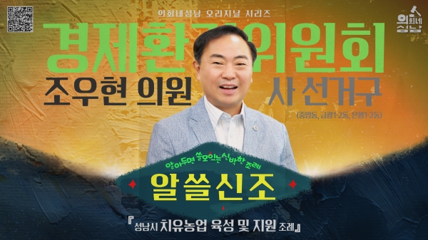 [광성일보] 성남시의회는 ‘알쓸신조-조우현 의원 편’영상을 23일 17시 시의회 공식 SNS에 게시한다.이번에 소개하는 조례는 조우현 의원 등 13명이 공동 발의한 「성남시 치유농업 육성 및 지원 조례안」이다.