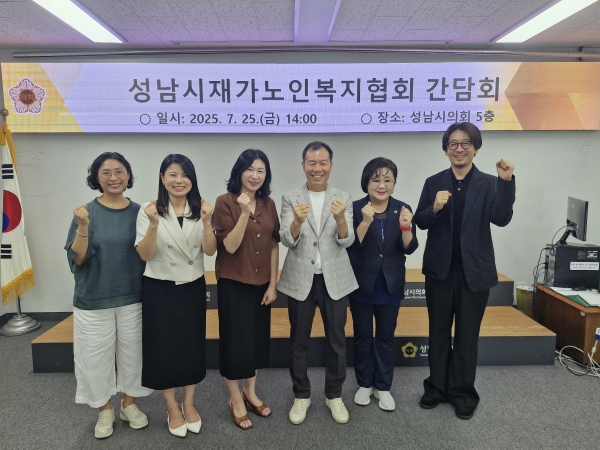 이에 성남시의회 안극수 문화복지체육위원장은 “성남시의회를 대표하는 위원장으로서 체계적이고 장기적인 노인 돌봄 정책 추진이 시급한 만큼, 시의회에서도 노인 돌봄에 대한 촘촘한 복지 안전망이 구축될 수 있도록 정책 대안 마련과 지원 역할에 최선을 다하겠다”고 강조했다.그리고 서희경 의원은 “성남시 관내 위기·취약 노인의 일상생활 유지와 복지 향상에 헌신해 온 재가노인지원서비스 기관 종사자 분들의 노고에 진심으로 감사드린다”며 “오늘 간담회에서 제안된 여러 의견들을 바탕으로 질 높은 돌봄서비스가 제공될 수 있도록 제도적 기반을 강화하고 현장의 어려움을 해소할 수 있는 다양한 지원책을 마련해 나가겠다”고 밝혔다.간담회에는 성남시재가노인복지협회 이유진 협회장을 비롯한 임원진과 성남시의회 안극수 문화복지체육위원장, 서희경 의원이 배석했다.