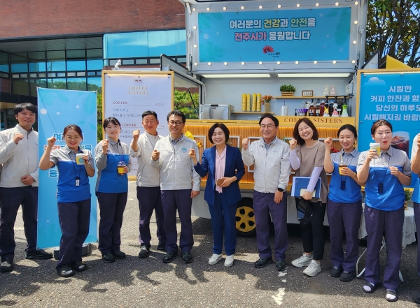 이번 행사는 시와 전주시복지재단 ‘전주사람’이 협력해 추진된 것으로, 이날 삼양화성 공장 정문에는 커피차가 배치돼 근로자 150여 명에게 시원한 음료가 제공됐다. 행사는 전주형 착한소비 운동인 ‘함께장터’와 전주시복지재단의 기부금으로 진행됐다. 근로자들은 잠시나마 폭염을 잊고 휴식을 취하며 전주시 관계자들의 응원을 받았다. 이어 열린 현장 간담회에서 시는 폭염 대응 상황을 점검하고, 기업의 애로사항을 청취했다.