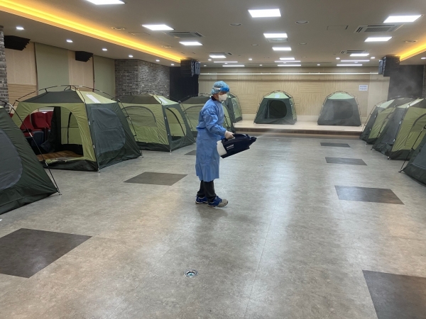 임시주거시설에 대해서는 내·외부 및 공용공간에 주기적인 방역소독을 실시하고, 해충 기피제 및 손 소독제 등 감염병 예방물품 배부했다.