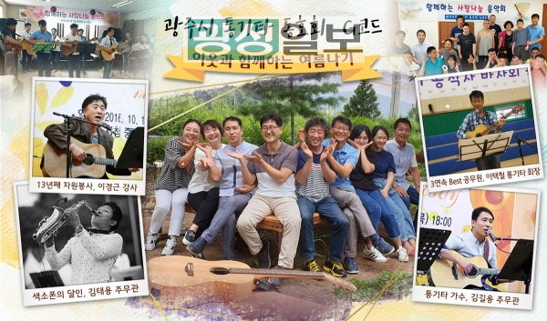 광주시청 색소폰의 달인 김태용 주문관은 2017년 제11회 공무원 음악대전에서 영예의 ‘금상’을 수상했고 통기타 가수 김길용 주무관은 이경근 강사와 같이 두엣으로 꾸준히 재능기부를 실천해 오고 있다.