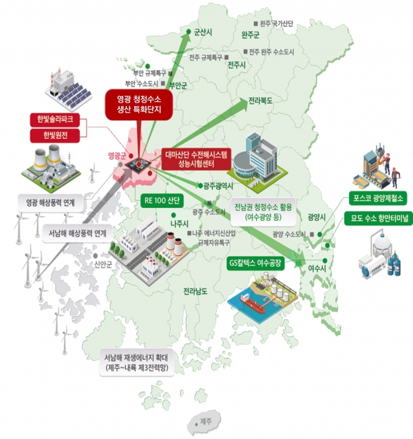 [광성일보] 전라남도가 ‘서남해안 청정수소 에너지 산업벨트’ 조성을 목표로 산업통상자원부가 공모하는 ‘수소특화단지 지정’에 본격 도전한다.전남도는 영광 대마산단 배후부지(2만 5천 평)와 대마산단(7만 평)에 총사업비 2조 7천억 원 규모의 국내 최대 수소특화단지를 조성하고, 1단계로 500MW급 청정수소 생산시설 구축 후 향후 1GW까지 확장할 계획이다.전남도의 핵심 전략은 무탄소 전력을 활용한 경제적·안정적 청정수소 생산하는 것이다.이를 기반으로 2030년까지 국내 수전해 관련 기업, 고등기술연구원 등 산·학·연이 집적된 클러스터를 조성해 수소 생산에서 저장·운송, 활용까지 이어지는 전 주기 산업 생태계를 완성한다는 목표다.