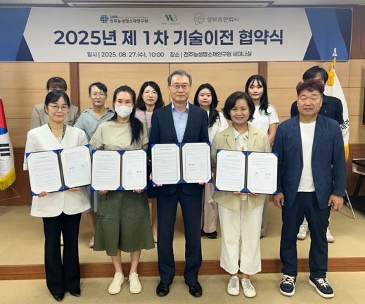 전주시 출연기관인 (재)전주농생명소재연구원(원장 김상남)이 지역 농생명산업 발전을 위해 기술 이전 협약 체결