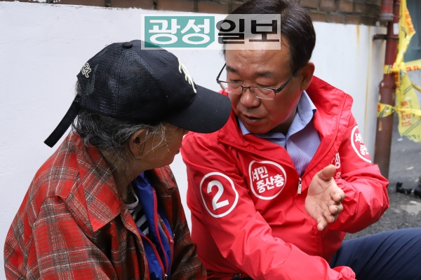 박정오 후보, 실제 거주자인 80대 할머니 만나 현장에서 직접 위로