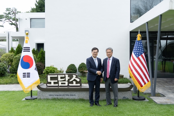 [광성일보] 김동연 경기도지사가 4일 도담소에서 조셉 윤(Joseph Yun) 주한 미국대사대리와 오찬을 갖고, 최근 한미 정상회담을 계기로 더욱 공고해진 양국 협력의 중요성을 재확인하며 경기도-미국 간 관계 강화 방안을 논의했다.김동연 지사는 한미관계가 중요한 전환점을 맞은 시기에 윤 대사대리가 경기도를 방문한 것에 감사를 표했다. 또 앞으로 한미동맹과 양국 공동 번영을 위해 대사대리의 역할이 더욱 커질 것이라 기대한다고 밝혔다.
