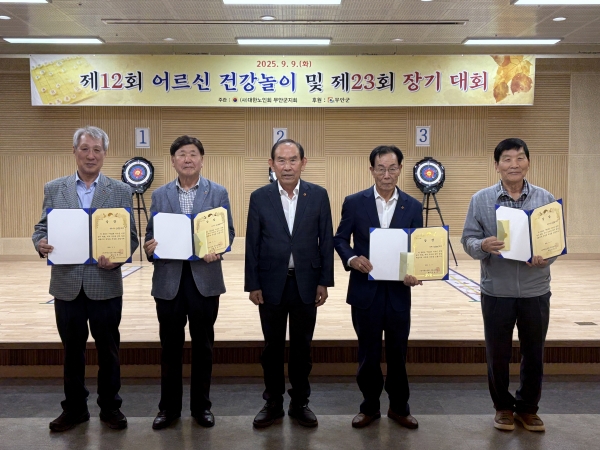 대회 결과 건강놀이대회 ▲종합우승 2년 연속 대한노인회 무안읍분회 ▲준우승 청계면분회 ▲장려상 몽탄면분회가 차지했으며, 장기대회 △1위는 2년 연속 무안읍 양재석씨 △2위 일로읍 정덕균씨 △3위 해제면 정찬수씨가 수상의 영예를 안았다.김산 군수는 “어르신들의 활기찬 모습으로 삶의 활력을 느낄 수 있는 자리가 되길 바란다”며, “앞으로도 어르신 모두가 행복하게 잘 사는 무안군이 되도록 최선을 다하겠다”고 밝혔다.