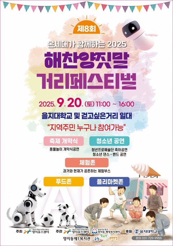 [광성일보] 성남시청소년청년재단(대표이사 양경석) 양지유스센터는 9월 20일, 오전 11시부터 오후 4시까지 을지대학교와 걷고싶은거리 일대에서 청소년·청년과 온세대가 함께하는 ‘제8회 해찬양짓말 거리페스티벌’을 개최한다고 밝혔다.