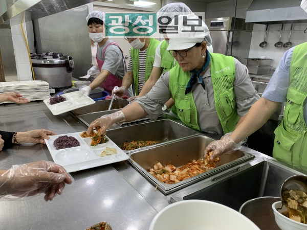 수정구 관내 산성종합사회복지관 경로식당에서 무료 배식 봉사활동을 펼쳤다.