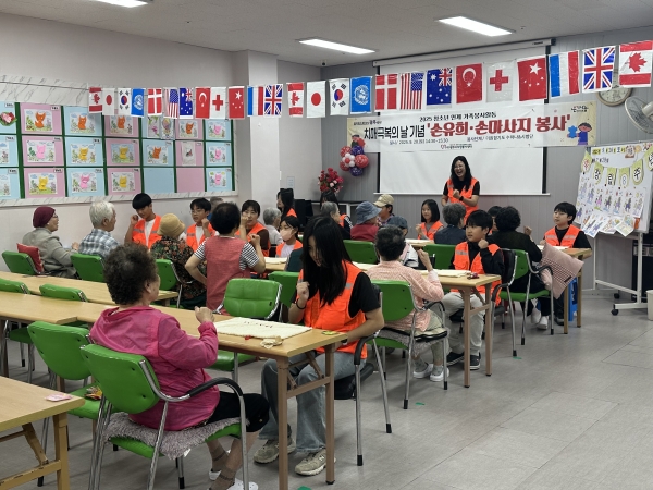 이날 오전, 참여한 자원봉사자들은 센터 교육장에서 ‘치매예방 뇌마스타 봉사단’의 재능기부 아래 다양한 손유희와 건강박수 방법에 대한 교육을 이수하고, 오후에 노인주간보호센터로 이동하여 본격적인 봉사활동을 펼쳤다.이번 활동은 (사)광주시자원봉사센터가 주관한 청소년 손마사지 봉사활동의 세 번째 활동으로 참여한 청소년들은 지난 3월 손마사지 교육 수료 후, 분기별로 지역 내 어르신들을 위한 봉사활동을 꾸준히 실천해 왔다.3월에는 손마사지 활동과 더불어 합기도 공연(봉술, 낙법, 부채춤)을 선보이며 어르신들께 즐거운 문화체험을 제공했으며, 6월에는 호국보훈의 달을 맞아 광주시보훈회관 회원을 대상으로 손마사지 및 사랑의 자장면 점심식사를 지원하는 봉사활동도 진행했다.
