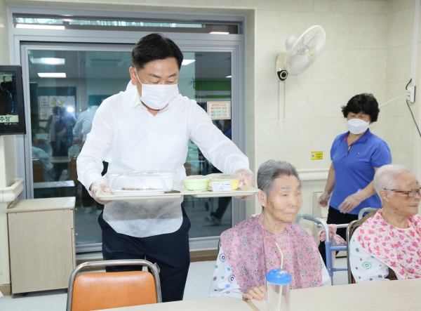 이날 김 도지사는 이른 아침부터 직접 배식에 나서 환자와 어르신들에게 식사를 챙기고, 일일이 덕담을 건네며 건강과 안부를 살폈다.