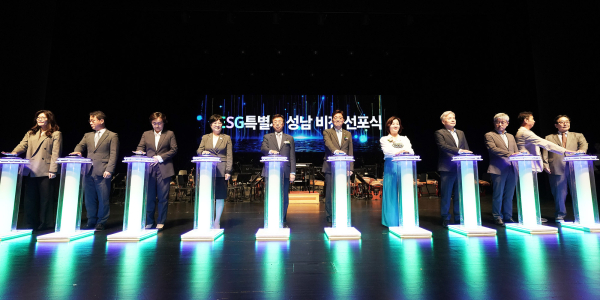 이런 내용의 ESG 비전·전략·추진 과제는 신상진 성남시장과 양옥경 성남시 ESG활성화위원회 위원장, 국회의원, 시의원, 기업·유관기관 단체장 등 12명이 무대에 올라 비전 선포 버튼을 눌러 관련 영상을 송출하는 방식으로 공개됐다.행사에 참석한 시민들(1800여 명)은 카드섹션 퍼포먼스에 참여해 ESG 비전에 대한 지지와 동참 의지를 표했다.신상진 성남시장은 “시민과 함께 성남의 새로운 비전을 선포하게 돼 뜻깊다”면서 “녹색도시 조성, 시민 안전망 강화, 시민참여 기반 정책 결정”을 약속했다.그러면서 “행정과 시민, 기업이 힘을 모아 ESG를 실천하는 사회 분위기를 만들어 나간다면 성남은 대한민국 대표 ESG 특별시로 나아가게 될 것”이라고 말했다.