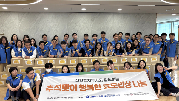 [광성일보] 사회복지법인 따뜻한동행 사당어르신종합복지관(관장 전재현)은 9월 30일(화), 신한벤처투자(대표이사 박선배) 임직원 43명과 함께 추석맞이 효도밥상 나눔 봉사 활동을 진행하였다.신한벤처투자는 국내 최초로 세컨더리 펀드를 설립하는 등 국내 벤처투자 시장에 새로운 활력을 불어넣는 벤처펀드 운용회사이다.
