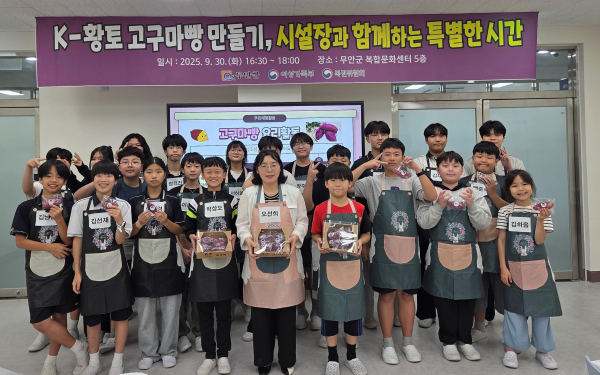 [광성일보] 전남 무안군(군수 김산) 청소년방과후아카데미는 지난 9월 30일 청소년 20여 명과 시설장이 함께하는‘K-황토고구마 빵 만들기’프로그램을 성황리에 진행했다.