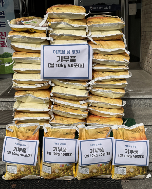 [광성일보] 법무부(장관 정성호) 청주소년원(청주미평여자학교)은 2025. 10. 17(금), 이동희 님(내사랑 토마토 대표)으로부터 보호소년 지원을 위한 쌀 10KG 40포대를 후원 받았다.이번 후원은 보호소년들의 안정적인 생활 여건과 건강한 성장을 지원하기 위한 취지로 마련되었으며, 전달된 쌀은 원내 급식에 활용할 예정이다.