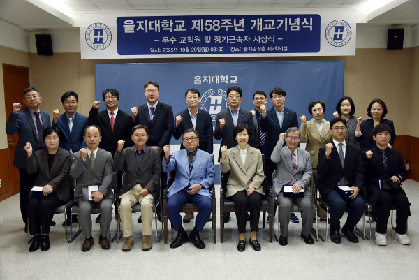 이날 오전 8시 30분 성남캠퍼스 을지관 8층 제2회의실과 대전캠퍼스 일현의학관 3층 지천홀에서 열린 기념식에는 박준영 을지재단 회장을 비롯한 홍성희 을지대학교총장, 박항식 부총장, 이승훈 의무부총장, 교직원 등 30여 명이 참석했다.이번 기념식은 1967년 설립 이후 반세기를 넘어 미래로 도약하는 을지대학교의 발자취를 되돌아보고, ‘미래형 을지’로 새롭게 도약하는 자리로 마련됐다.행사는 ▲개회 선언 ▲국민의례 ▲공로자 및 장기근속자 표창 ▲기념사 ▲사진 촬영 등의 순서로 진행됐다.