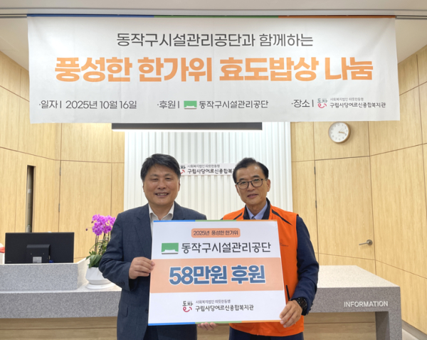 이번 전달식은 동작구시설관리공단 임직원들이 자발적으로 참여한 모금을 통해 마련된 후원금을 복지관에 전달하며 진행됐다. 후원금은 식료품 꾸러미로 구성되어 어르신 가정에 전달했다.동작구시설관리공단 김진우 이사장은 “지역 사회의 어르신들이 따뜻하고 풍성한 추석 명절을 보내시길 바라는 마음을 담았다. 앞으로도 나눔을 실천하며 지역사회 복지 향상에 기여하겠다”고 전했다.