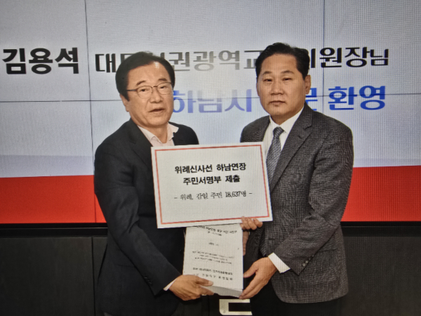 이현재 시장은 위례·감일 주민 1만 8,637명의 염원이 담긴 서명부를 전달하며, “위례신도시는 3개 지자체에 걸친 단일 생활권으로 계획됐고, 하남시민 역시 교통분담금을 부담했음에도 하남시만 철도교통에서 배제되어 있다”고 지적했다. 이어 “약 14년간 추진된 민자사업이 최종 유찰되어 서울시 재정사업으로 추진 중인 만큼, 올해 12월 수립 예정인 ‘제5차 광역교통시행계획’에 위례신사선 하남연장 노선이 반드시 포함돼야 한다”고 강조했다.둘째, 3호선 연장(송파하남선)과 9호선 연장(강동하남남양주선)의 조기 개통을 건의했다. 이현재 시장은 “3호선 연장은 교산신도시의 핵심 교통사업이나, 2029년 6월 최초 입주 이후인 2032년 개통을 목표로 하고 있어 ‘선(先) 교통, 후(後) 입주’ 원칙이 지켜지도록 대광위의 관리가 필요하다”고 말했다. 또한 “9호선 연장은 미사구간(2공구) 사업자 선정이 지연되면서 약 14만 미사강변도시 주민의 우려가 커지고 있다”며 조속한 개통을 위한 대광위의 적극적인 역할을 주문했다.셋째, 교산신도시 광역교통개선대책 변경 시 ‘하남IC 개선’ 및 ‘국도43호선 전면 확장’을 반영해달라고 요청했다. 이현재 시장은 “현재 하남IC는 불완전한 입체IC 구조로 진출입 우회 거리가 길어 애니메이션고교사거리 등에 상시 교통정체를 유발하고 있다”며, “교산신도시 개발 시 극심한 교통난이 우려되므로 진출입램프 추가 설치 등 ‘하남IC 개선’이 시급하다”고 설명했다. 아울러 최초 대책 수립 이후 교산신도시 계획인구 증가, 상산곡기업이전단지 추가 개발 등을 고려한 ‘국도43호선 전면 확장’도 함께 건의했다.